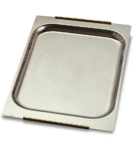 Vassoio rettangolare acciaio inox 18/10 con manici dorati 24 carati