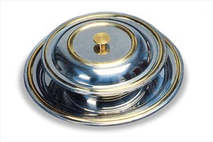 Servizio biscottiera e vassoio tondo diametro cm. 35 in acciaio inox 18/10 decorato in oro 24 carati