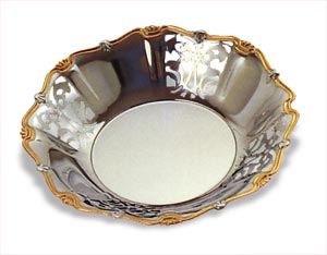Cestino pane inox 18/10 decorato in oro 24 carati